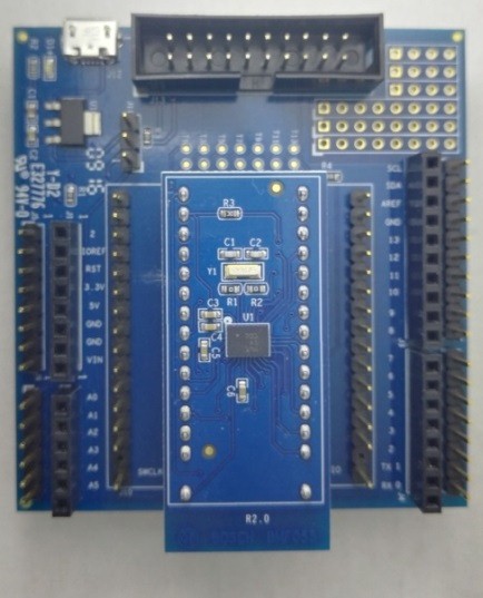 值得注意的是,為了防止板子被插反,在Shuttle Board上設(shè)置了兩個缺失的針腳,Application Board上有兩個缺失的插座孔,這樣的細(xì)節(jié)也是值得稱贊的,如下圖: