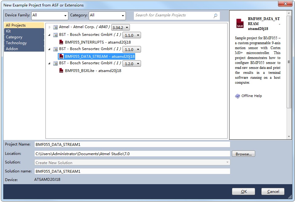 接下來我們就簡單介紹一下BMF055套件在Atmel Studio中的使用。