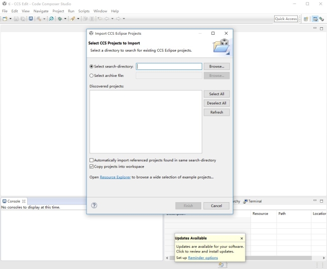 打開CCS,選擇Project->Import CCS Projects導(dǎo)入SDK中的工程。