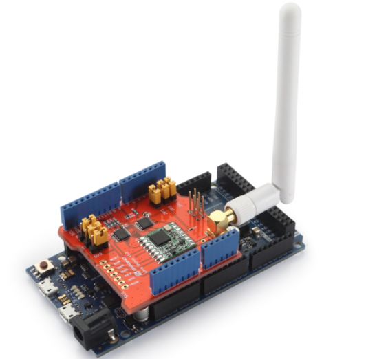 這是用來與Feather 32u4 LoRa通信的LoRa結(jié)點,來自國內(nèi)的Dragino出品的LoRa Shield,同樣是基于Arduino主控的一款LoRa產(chǎn)品,價廉物美。