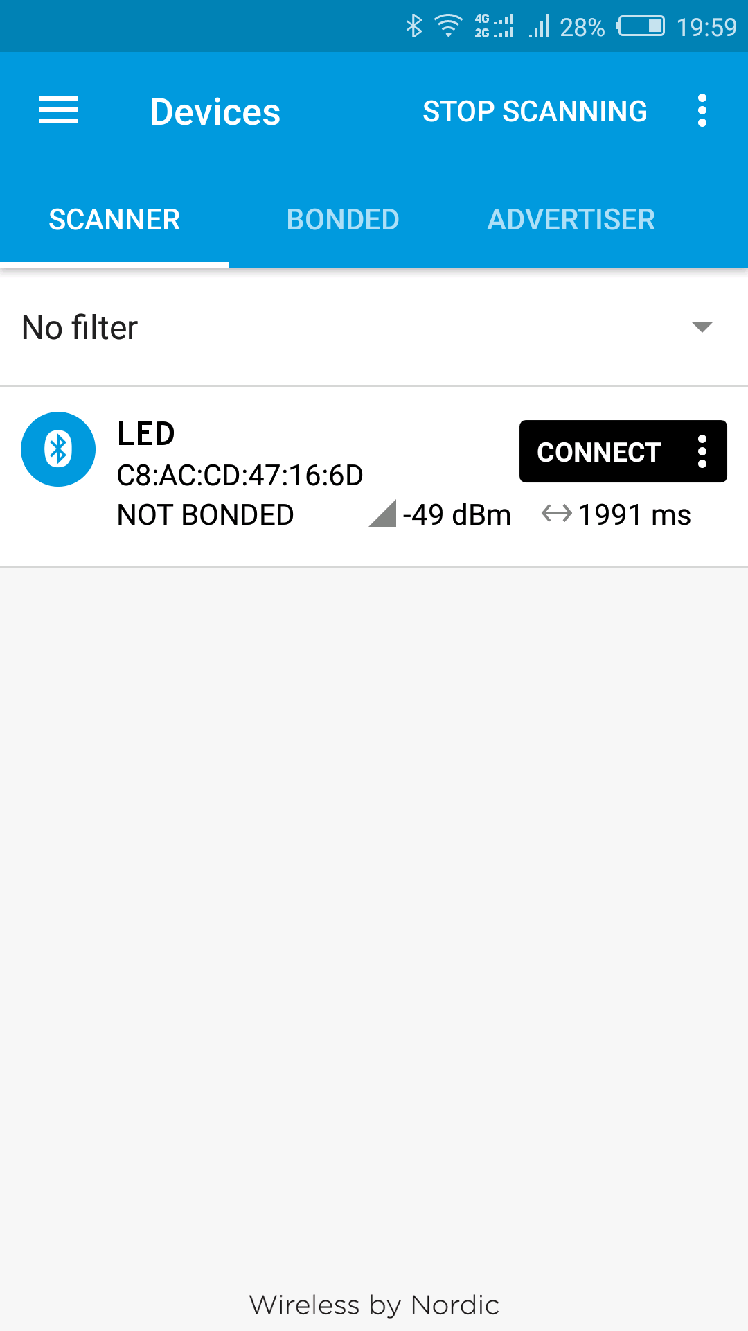 測(cè)試工具使用的是nRF connect Android版程序,測(cè)試的部分結(jié)果如下