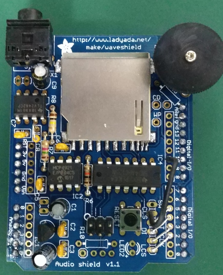 - 比如本文要介紹的Adafruit Wave Shield,就能是專門為Arduino設(shè)計(jì)的音頻模塊.確切的說是為AVR這一類的8位機(jī)而設(shè)計(jì)的音頻模塊.下文將從硬件到軟件詳細(xì)介紹一下子此模塊的設(shè)計(jì)細(xì)節(jié)與使用方法.