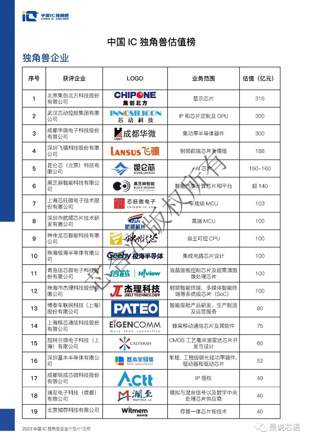 中國IC獨角獸聯(lián)盟正式發(fā)布"2023中國IC獨角獸企業(yè)估值榜"。