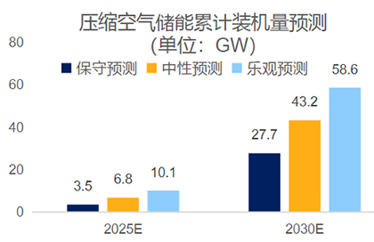 壓縮空氣儲能,在電網(wǎng)負(fù)荷低谷期將電能用于壓縮空氣,并將空氣高壓密封;在電網(wǎng)負(fù)荷高峰期,釋放壓縮空氣,推動(dòng)汽輪機(jī)發(fā)電。壓縮空氣儲能是一種能夠?qū)崿F(xiàn)大容量、長時(shí)間儲能的電力儲能系統(tǒng),是極具潛力的大規(guī)模儲能技術(shù)。壓縮空氣儲能可分為補(bǔ)燃式和非補(bǔ)燃式兩類,我國現(xiàn)有投產(chǎn)均為非補(bǔ)燃式,其中蓄熱式(絕熱)系統(tǒng)為主流。
