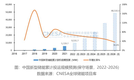 預(yù)計(jì)2026年新型儲能累計(jì)規(guī)模將達(dá)到 48.5GW,2022-2026年復(fù)合年均增長率(CAGR)為53.3%,市場將呈現(xiàn)穩(wěn)步、快速增長的趨勢。
