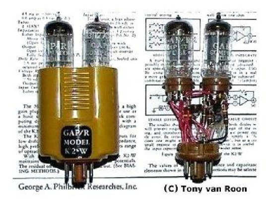 1952年:首次作為商業(yè)產(chǎn)品販?zhǔn)鄣倪\(yùn)算放大器是George A. Philbrick Researches(GAP/R)公司的真空管運(yùn)算放大器,型號K2-W;