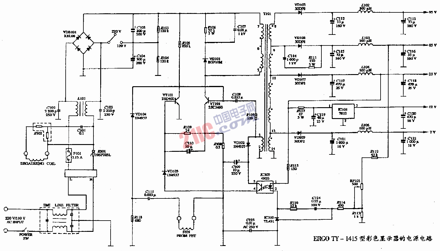 ERGO TY-1415型彩色顯示器的電源電路圖