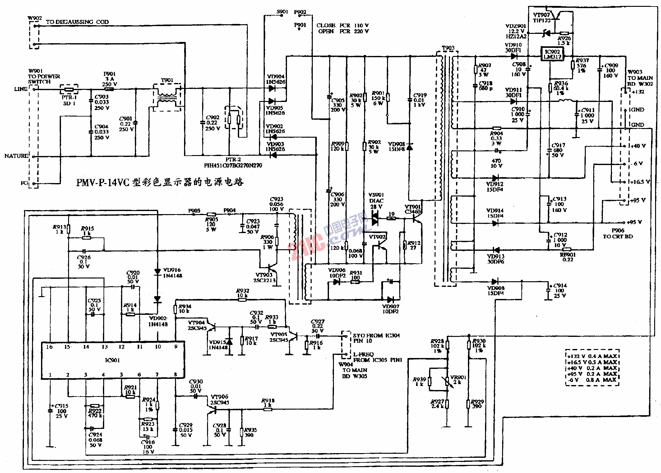 PMV-P-14VC型彩色顯示器的電源電路圖