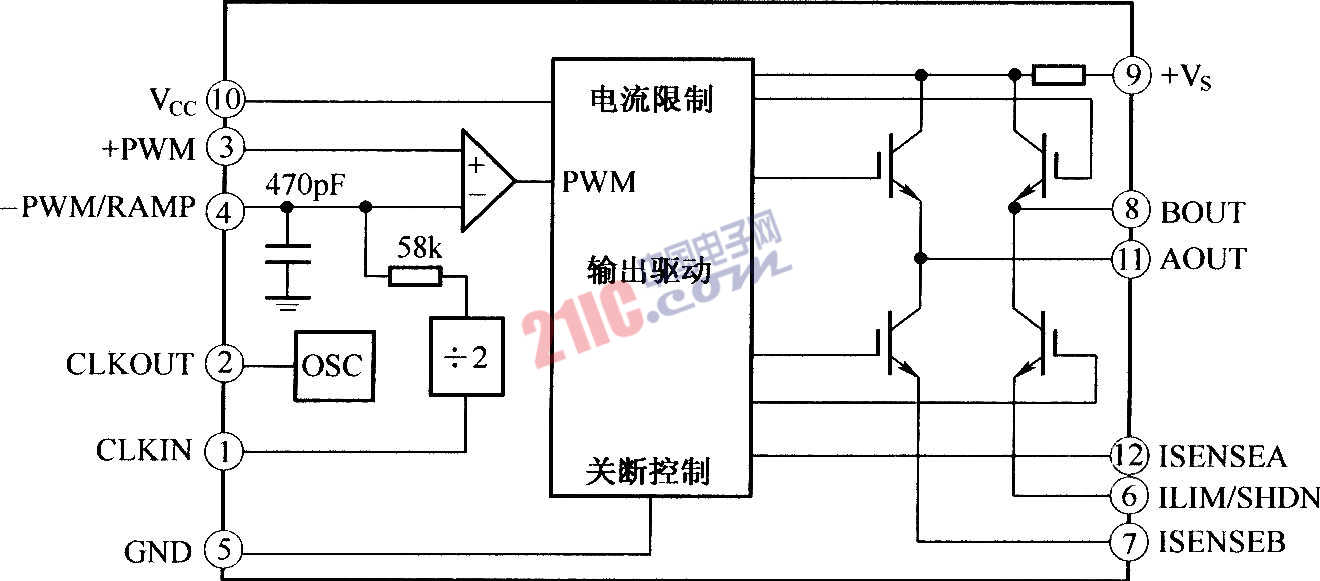 SA08脈寬調(diào)制器的內(nèi)部結(jié)構(gòu)原理圖