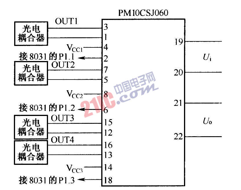 PWM信號(hào)與IPM智能功率模塊PM10CSJ060的連接:
