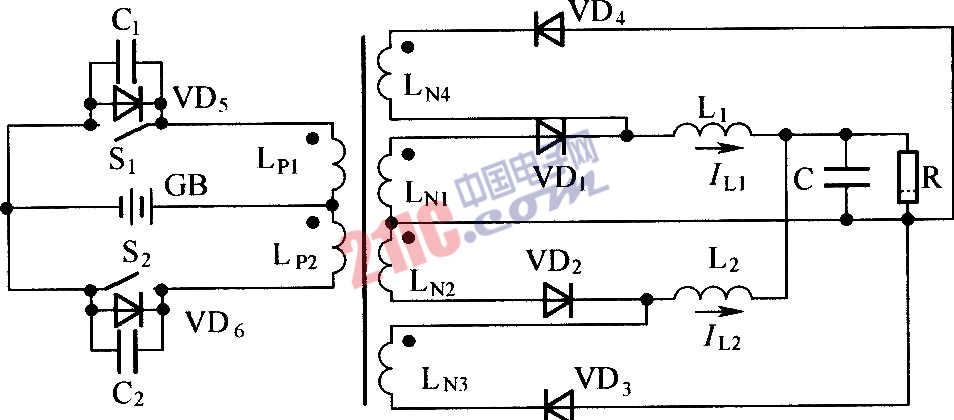 電感分裂式推挽換向軟開關(guān)電路