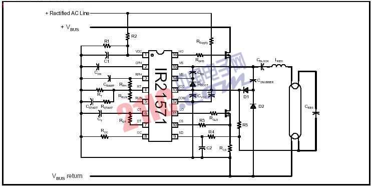IR21571專為直管型鎮(zhèn)流器設(shè)計(jì),綜合了IR2156的各種功能,并增加了失諧和欠壓等新的保護(hù)功能。