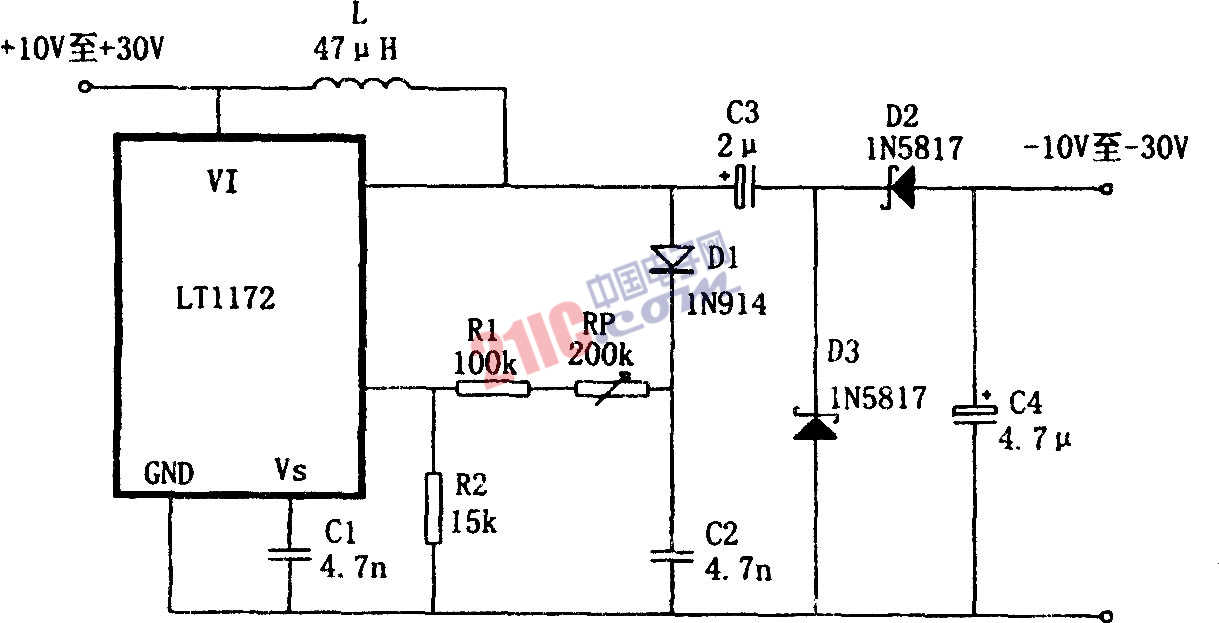 LT1172構(gòu)成的極性反轉(zhuǎn)型升壓電源