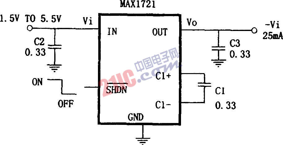 MAX1721構(gòu)成的微型極性反轉(zhuǎn)電源
