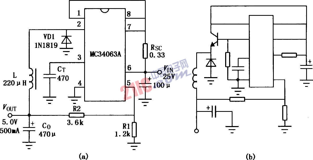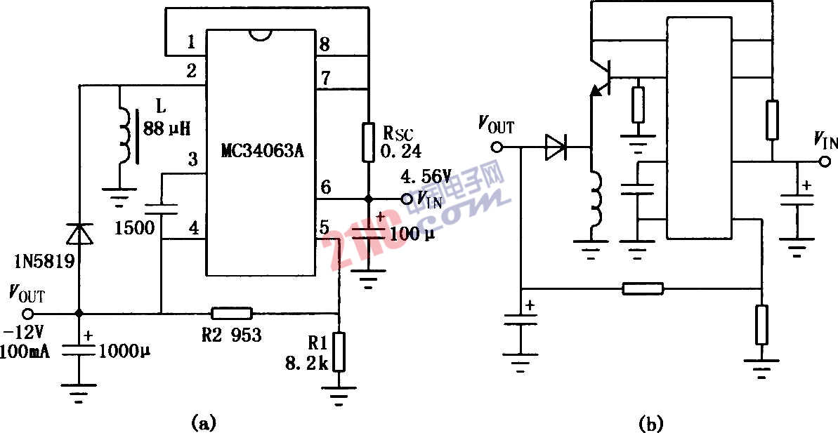 MC3406A用作升壓式DC-I)C變換器電路: