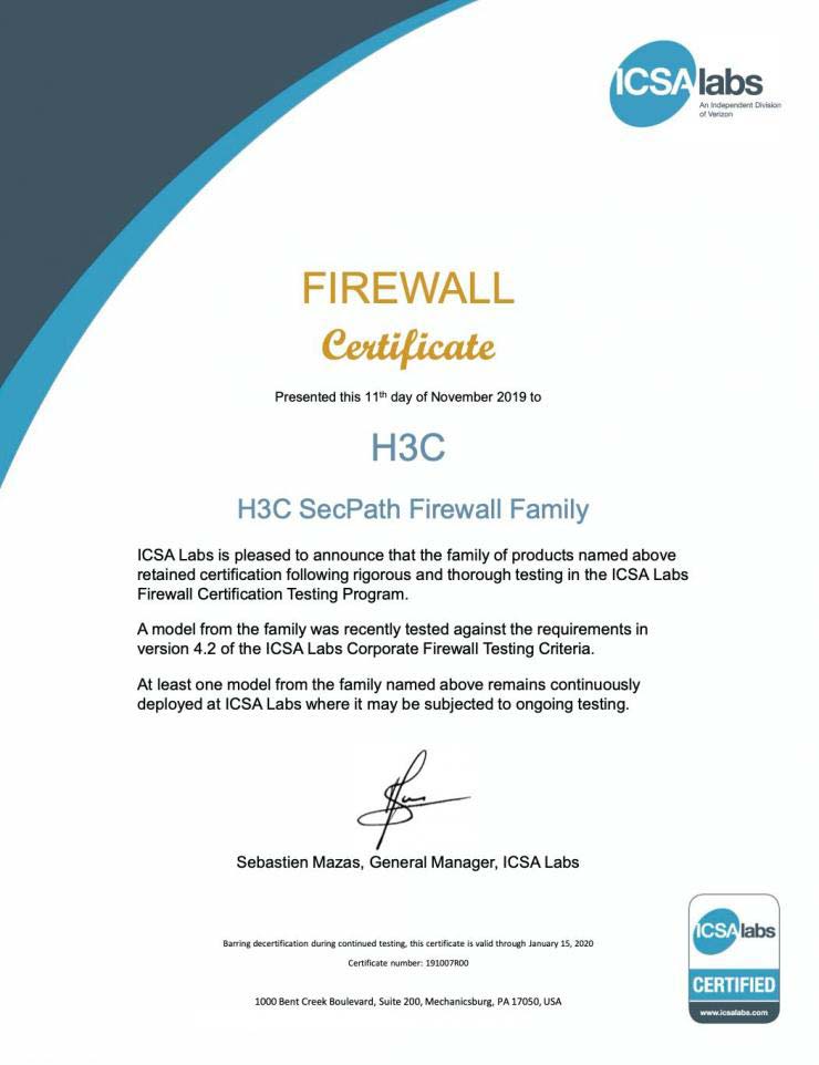 H3C SecPath全系列防火墻榮獲ICSA實(shí)驗(yàn)室最高標(biāo)準(zhǔn)認(rèn)證