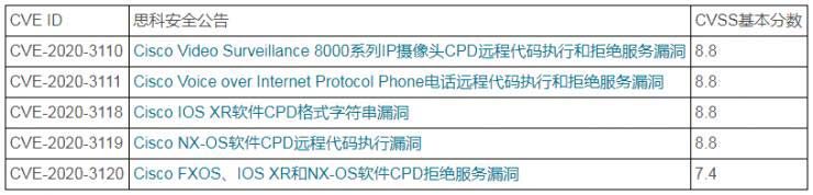 思科已經(jīng)發(fā)布了修復(fù)這些漏洞的軟件更新。下表提供了這些漏洞的摘要清單: