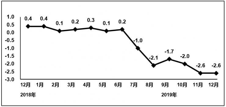 2019年,電子信息制造業(yè)生產(chǎn)者出廠價格同比下降0.9%。12月份,電子信息制造業(yè)生產(chǎn)者出廠價格同比下降2.6%,降幅與上月持平。