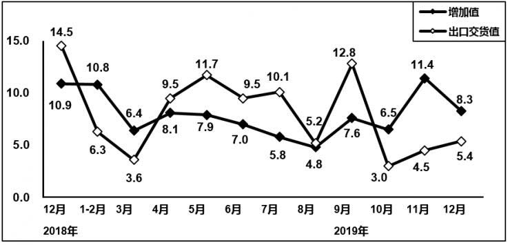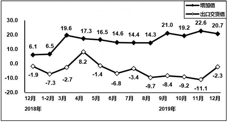 12月,電子器件制造業(yè)增加值同比增長8.3%,出口交貨值同比增長5.4%。主要產(chǎn)品中,集成電路產(chǎn)量同比增長30%。