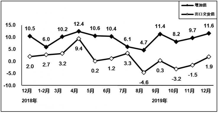 2019年,規(guī)模以上電子信息制造業(yè)增加值同比增長9.3%,增速比上年回落3.8個百分點。12月,規(guī)模以上電子信息制造業(yè)增加值同比增長11.6%,增速比上年提升1.1個百分點。