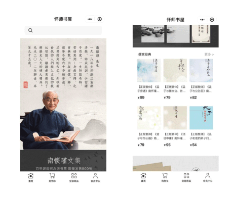 除了售賣南先生的書籍,懷師書屋還有豐富的課程體系:線上課程、線下講座、游學(xué)……一系列圍繞傳統(tǒng)文化的課程和活動,吸引了大量國學(xué)愛好者,而小程序多樣化的應(yīng)用場景,可以更加便捷的將這些線下流量吸引到線上,完成成交轉(zhuǎn)化!