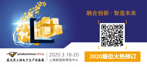 2020年3月18-20日,上海新國際博覽中心,慕尼黑上海電子生產(chǎn)設備展(productronica China)帶您進入“融合創(chuàng)新”的新世界。下一屆展位預訂通道火熱開啟中,近八成的展位已被預訂,展商數(shù)量已突破1,400家。掃描下方二維碼,一起加入慕尼黑上海電子生產(chǎn)設備展的大家庭吧!