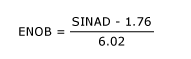 有效位數(shù)(ENOB):模數(shù)轉(zhuǎn)換器(ADC)與輸入頻率fIN相關(guān)的測(cè)試指標(biāo)(位)。隨著fIN的增大,整體噪聲(特別是失真成分)將會(huì)增大,因而降低了ENOB和SINAD性能。另請(qǐng)參考:信號(hào)與噪聲 + 失真比(SINAD)。ENOB與SINAD的關(guān)系式為: