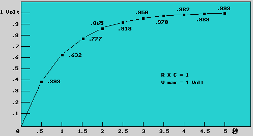 電容式電壓隨時間 Vc = V * (1- e^(-t / R*C))