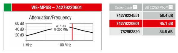 輸入您想要的衰減和頻率值,將根據(jù)系統(tǒng)模型計算推薦合適的鐵氧體和共模扼流圈。