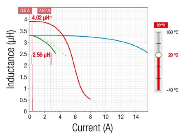 • 能夠使用交互測量曲線比較電感/電流和溫升/直流電流