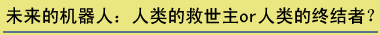 人類制造機(jī)器人的夢想已經(jīng)延續(xù)了幾千年,形形色色的機(jī)器人在科幻故事里大行其道。而隨著技術(shù)的發(fā)展,現(xiàn)在的機(jī)器人越來越智能化、人性化,甚至擁有類似人類的聽覺、視覺和觸覺,微型機(jī)器人、仿生機(jī)器人、納米機(jī)器人紛紛登上舞臺,所具備的“能力”不亞于科幻故事中的描述。機(jī)器人的出現(xiàn)已經(jīng)改變并將更深遠(yuǎn)地改變?nèi)祟惖纳,同時機(jī)器人的“威脅論”,人類的應(yīng)對策略也隨之出現(xiàn),我們不禁會問:機(jī)器人到底是人類的救世主還是終結(jié)者?