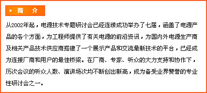 2008年,北京、深圳、上海、成都、西安、武漢六地的現(xiàn)場出席聽眾總數(shù)達到了創(chuàng)紀錄的2305人,總共超過4萬名工程師通過各種渠道關注此次會議,參會聽眾紛紛表示,通過研討會這種面對面的溝通方式,他們不但能夠獲得最新的產(chǎn)品和技術信息,與行業(yè)專家的零距離接觸更讓他們獲益匪淺! 專題回顧: 第七屆電源技術專題研討會暨展示會