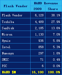 在其他市場研究機構(gòu)的排行榜中,SanDisk往往并未列名,因為在某些情況下該公司是與合作伙伴東芝視為一體。Web-Feet Research報告中列出了