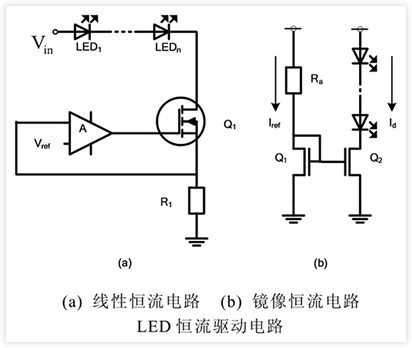 在線性恒流電路中,主功率器件與 LED 負(fù)載串聯(lián),且工作在線性放大區(qū),其典型電路圖如圖(a)所示。[詳情]