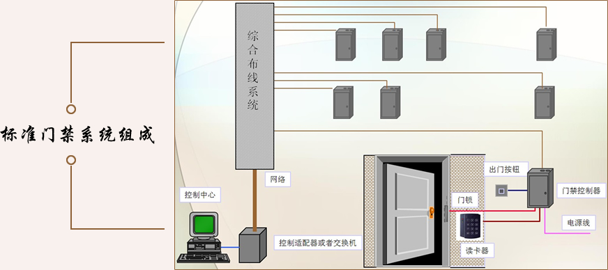 門禁系統(tǒng)通常是指采用現(xiàn)代電子與信息技術(shù),在出入口對人或物這兩類目標的進、出,進行放行、拒絕、記錄和報警等操作的控制系統(tǒng)。 1、對需控制的出入口,安裝受電鎖裝置和感應(yīng)器(如:電子密碼鍵盤、讀卡器、指紋閱讀器等)控制的電控門; 2、授權(quán)人員持有效證卡,或密碼和自己的指紋,就可以開啟電控門; 3、所有出入資料,都被后臺計算機記錄在案;通過后臺計算機可以隨時修改授權(quán)人員的進出權(quán)限; 4、該系統(tǒng)還可以加入考勤系統(tǒng)功能;
