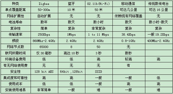 ZIGBEE\藍牙\WI-FI等技術(shù)的比較