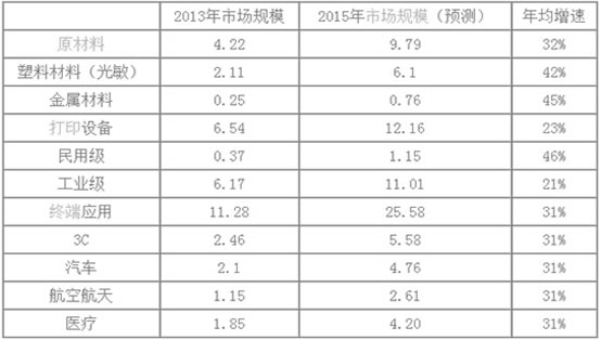 3D打印產(chǎn)業(yè)細分市場的產(chǎn)值和增速預測