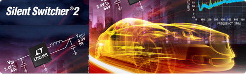 LT8645S 的 Silent Switcher® 2 架構(gòu)采用兩個(gè)內(nèi)部輸入電容器以及內(nèi)部 BST 和 INTVCC 電容器以最大限度減小熱環(huán)路面積。結(jié)合非常良好受控的開關(guān)邊沿和一種具有整體接地平面的內(nèi)部構(gòu)造,并采用銅柱代替了接合線,LT8645S 的設(shè)計(jì)大幅度地降低了 EMI / EMC 輻射。