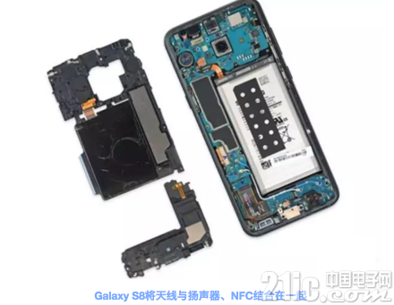 所以,在全面屏?xí)r代,手機(jī)天線需要重新優(yōu)化設(shè)計(jì),對(duì)天線廠商提出了更高的要求。例如三星 Galaxy S8 就將天線與揚(yáng)聲器、NFC線圈等結(jié)合在一起,將天線放置在中框兩側(cè),保證了“凈空”的要求。