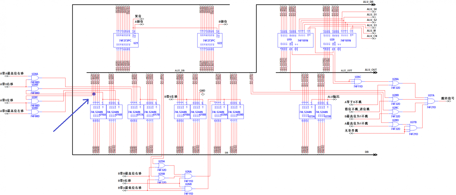 是不是很酷!!!這套U真的太神了,看這些基本的邏輯門電路就能組合出一個真正的CPU來。。。實在是太神了。。