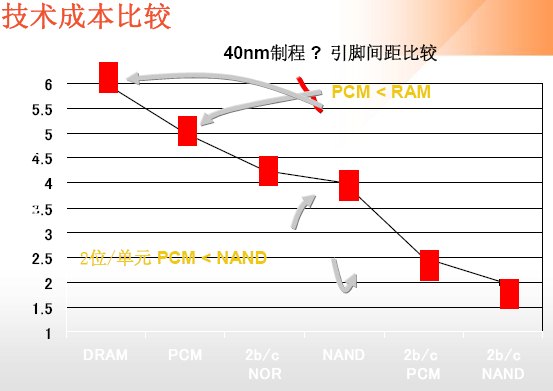 “我經(jīng)常聽到有人問我一個的問題,就是PCM的成本到底怎么樣?!?Edward Dolle說到,“我對于PCM和其他的技術(shù)成本進(jìn)行了一個比較。這個比較,在縱軸上,以它的尺寸數(shù)據(jù)作為一個標(biāo)準(zhǔn),這個標(biāo)準(zhǔn)基本可以用來衡量不同技術(shù)的成本。在最下面,40納米制程的二分之一引腳工具比較方面,PCM的成本低于RAM。同時,我們現(xiàn)在正在研發(fā)的是每單元兩位的PCM。一旦研發(fā)成功,它的成本將有望低于NAND的成本?!蓖瑫r他信心十足的表示“PCM存儲器的未來發(fā)展的良好前景,不是一個可不可以的問題,而是一個時間的問題”,這也不難看出恒憶未來發(fā)展的重心。