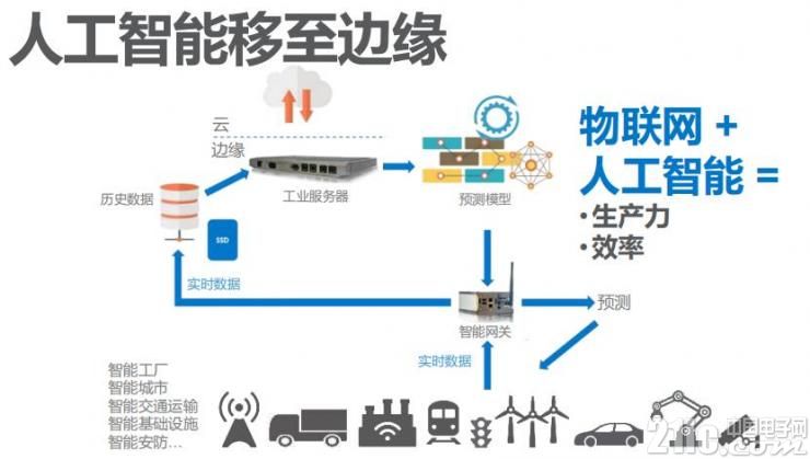 過(guò)去的人工智能處理流程是在邊緣設(shè)備上采集數(shù)據(jù),通過(guò)路由器傳輸?shù)椒?wù)器或云端,通過(guò)人工智能技術(shù)進(jìn)行分析或者是對(duì)數(shù)據(jù)進(jìn)行更新,然后把更新數(shù)據(jù)傳回邊緣計(jì)設(shè)備中。