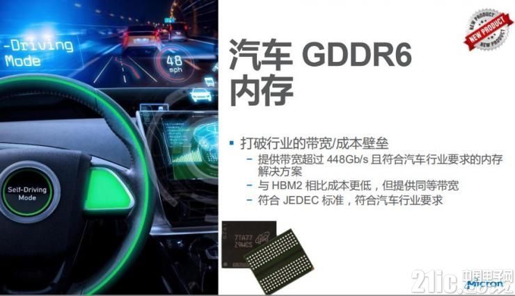 美光對(duì)過(guò)去應(yīng)用在顯卡和游戲當(dāng)中的GDDR6進(jìn)行了優(yōu)化改善,使其能保證應(yīng)用在汽車(chē)當(dāng)中的最佳性能,以適應(yīng)ADAS和未來(lái)自動(dòng)駕駛的需求。未來(lái)會(huì)有更多車(chē)聯(lián)網(wǎng)、車(chē)與基礎(chǔ)設(shè)施和自動(dòng)駕駛需求,對(duì)于產(chǎn)品連接性有更高需求,所以美光對(duì)LPDDR產(chǎn)品進(jìn)行了優(yōu)化改善,包括適應(yīng)5G和LTE等各種最新技術(shù)的需求。
