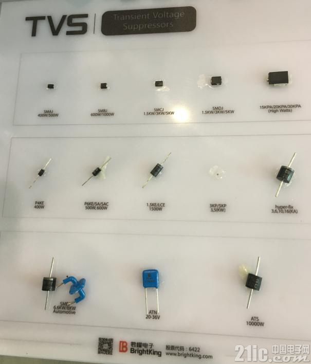 君耀電子的FAE副總張少秋談到:瞬態(tài)電壓抑制二極管(TVS)的出貨量占前三,營(yíng)收占30%-40%.其中AEC-Q101的工作電壓是3.3V,5.0V-1200V,耐點(diǎn)電流最高達(dá)20KA(8/20μs),浪涌吸收功率最高超過(guò)30KW(10/1000μs),封裝形式采用軸心引線式/貼片式/徑向式,電容值達(dá)50-幾千pF。