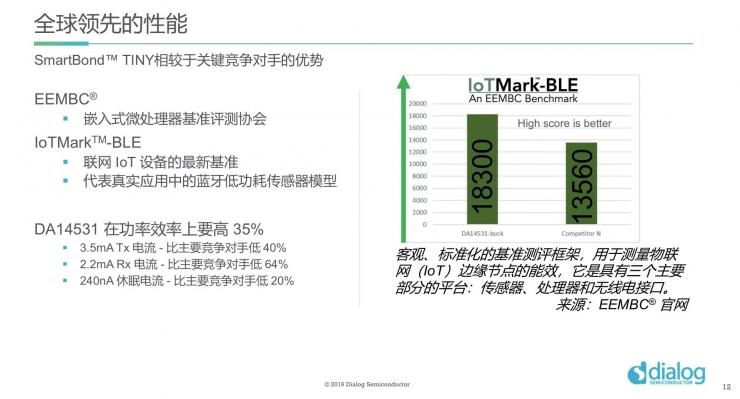 SmartBond TINY基于32位ARM Cortex M0+內(nèi)核,具有集成的內(nèi)存及一套完整的模擬和數(shù)字外設(shè),在最新的IoT連接EEMBC基準(zhǔn)上獲得了破紀(jì)錄的18300高分。其架構(gòu)和資源允許它作為獨(dú)立的無線微控制器使用,或者為已經(jīng)有微控制器的現(xiàn)有設(shè)計(jì)添加RF數(shù)據(jù)傳輸通道。SmartBond TINY在功率效率上比同類產(chǎn)品提升了35%。
